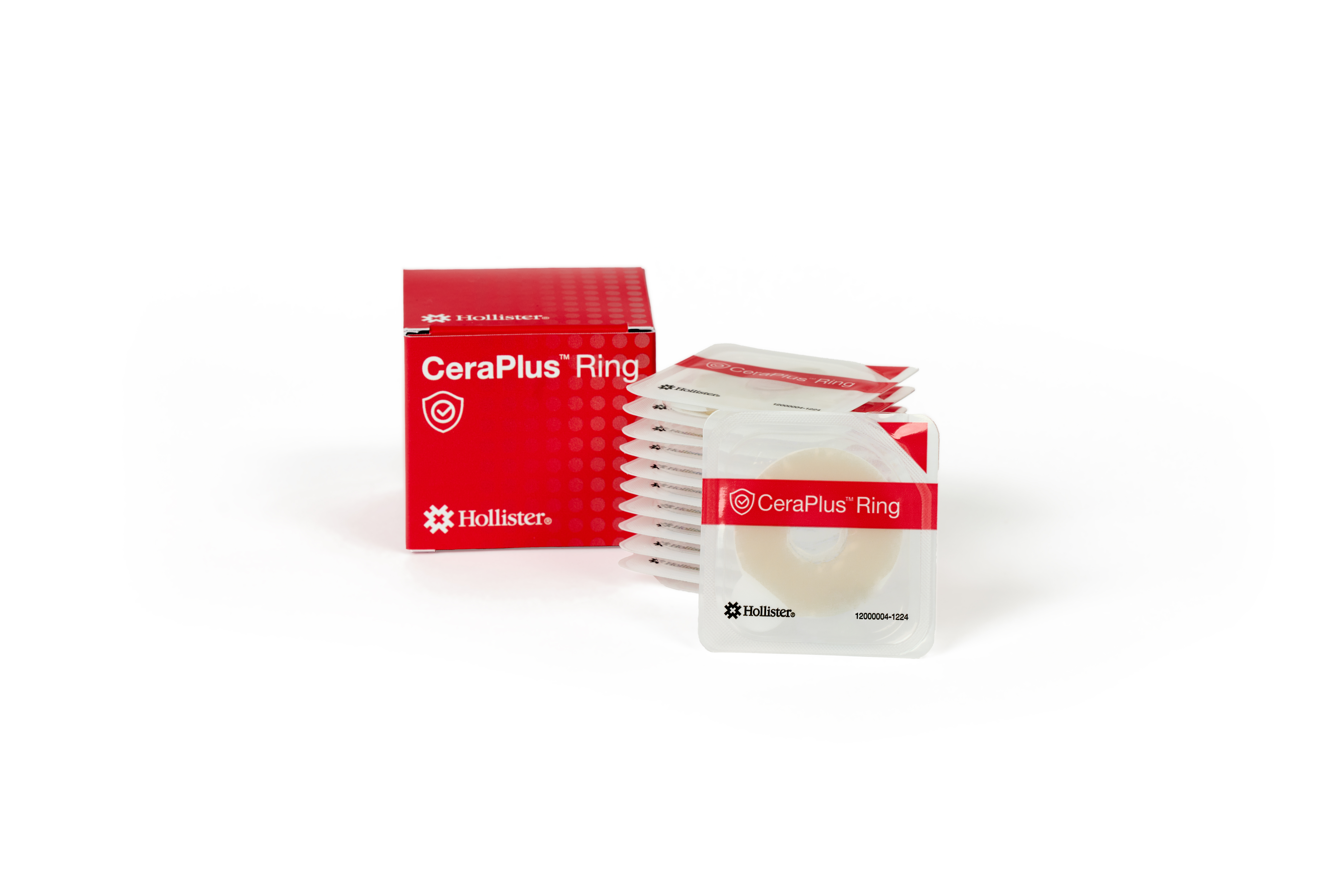 CeraRing™ er tilsat ceramid for at beskytte huden og hjælpe med at forhindre lækage. CeraRing™ findes i flad, rund og oval form, er fleksible og kan formes så den udfylder ujævnheder i huden omkring stomien, giver sikkerhed, skræddersyes til din stomi og er komfortabel.